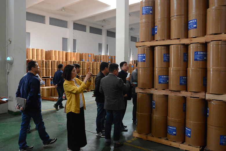 2016年4月18日,河南堅果炒貨商會(huì )秘書(shū)長(cháng)張國和一行率團來(lái)中華化工參觀(guān)考察,公司領(lǐng)導汪建根、丁建勝、朱正清一起接待了考察團一行。在座談會(huì )上,汪總通過(guò)PPT的形式將公司的基本情況以及對于公司未來(lái)發(fā)展做了詳細的介紹,丁副總也針對河南炒貨市場(chǎng)的情況做了專(zhuān)門(mén)的交流,張秘書(shū)長(cháng)也做了互動(dòng)交流,表示以后兩地合作將會(huì )更加的密切。座談交流會(huì )結束后,參與考察的炒貨界客戶(hù)代表實(shí)地參觀(guān)了公司車(chē)間和成品倉庫。