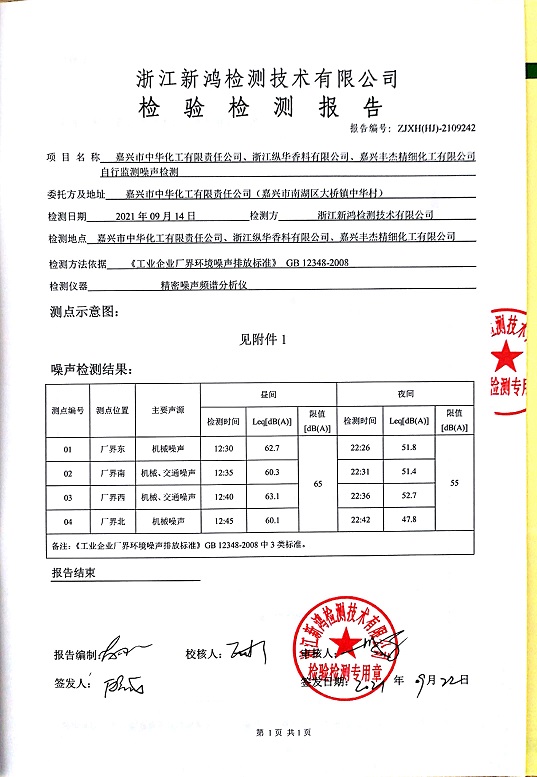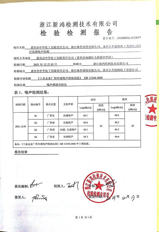 報告名稱(chēng):中華化工、縱華、豐杰3、4季度噪聲檢測報告