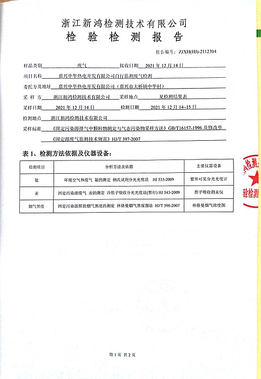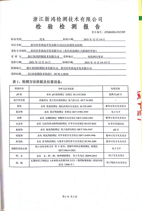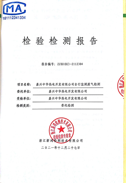 報告名稱(chēng):中華熱電12月廢氣、廢水、4季度噪聲檢測報告