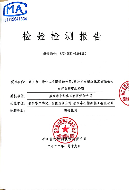 報告名稱(chēng):中華化工、縱華、豐杰2022年1季度廢水檢測報告