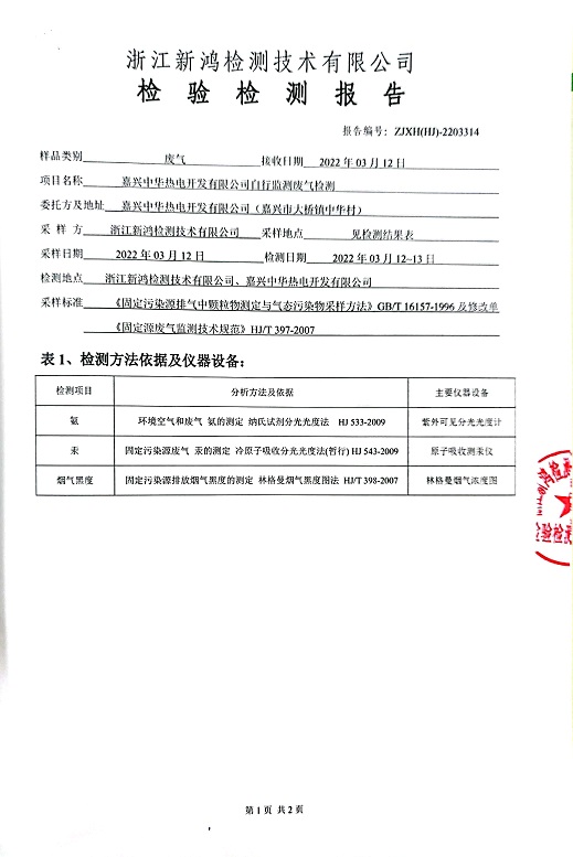 報告名稱(chēng):中華熱電2022.3月廢氣檢測報告