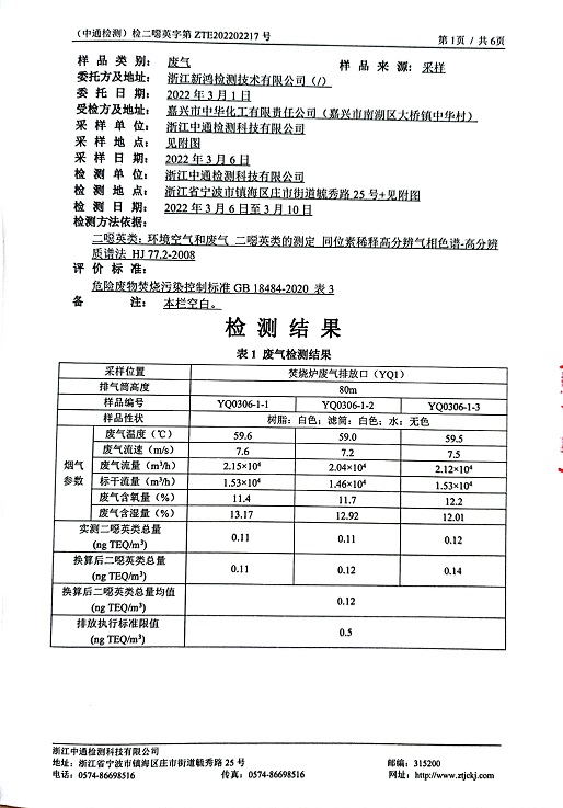 報告名稱(chēng):中華化工上半年二噁英檢測報告