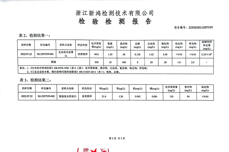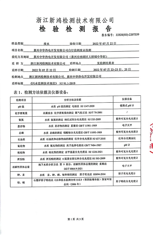 報告名稱(chēng):中華熱電2022年7月廢水檢測報告