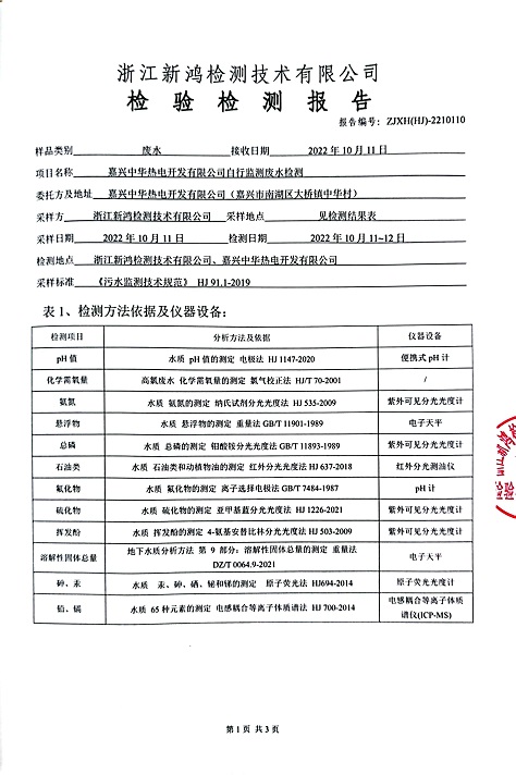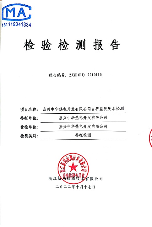 報告名稱(chēng):中華熱電2022年10月廢水檢測報告