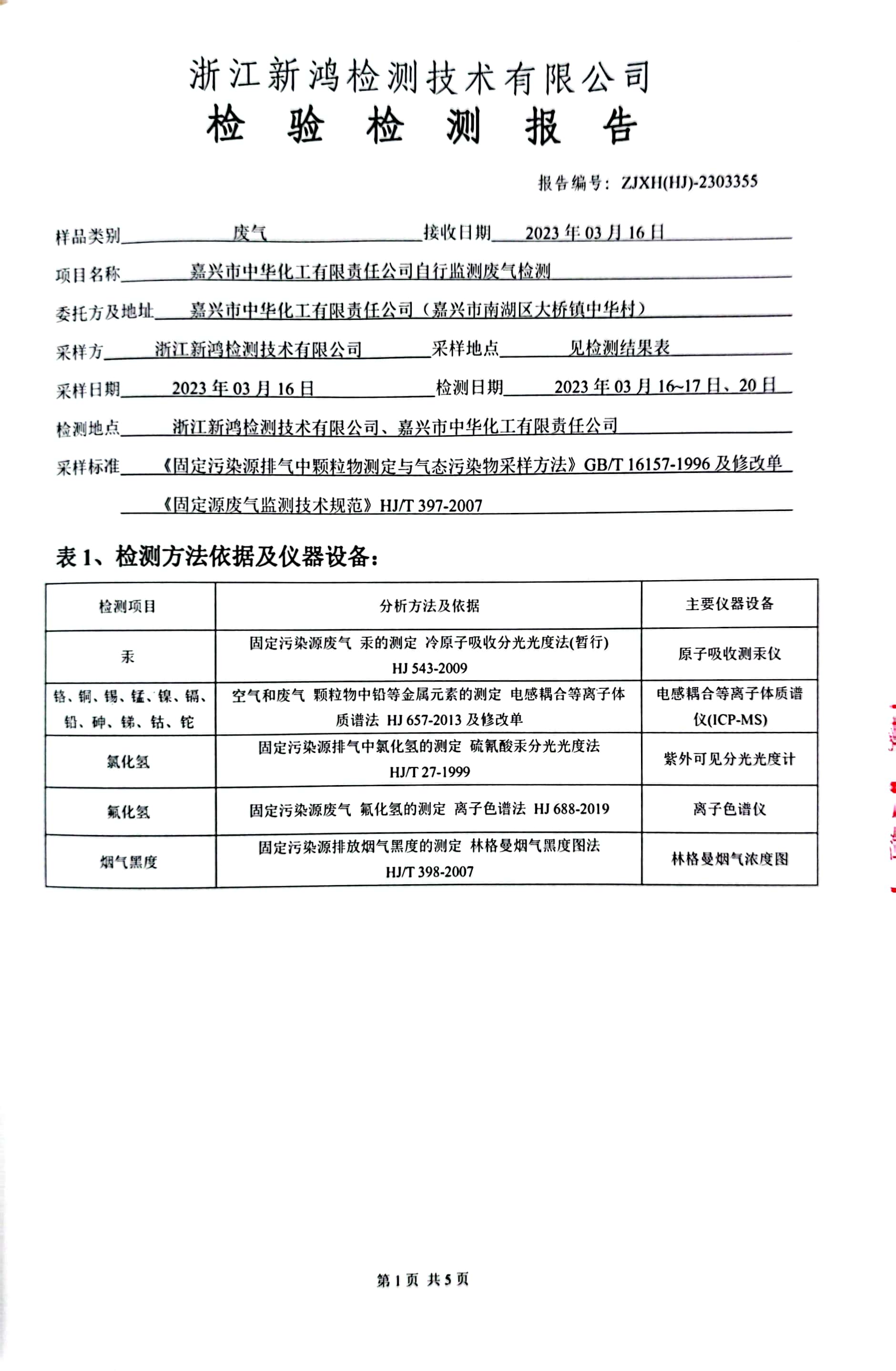 報告名稱(chēng):中華化工2023年3月廢氣檢測報告