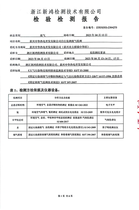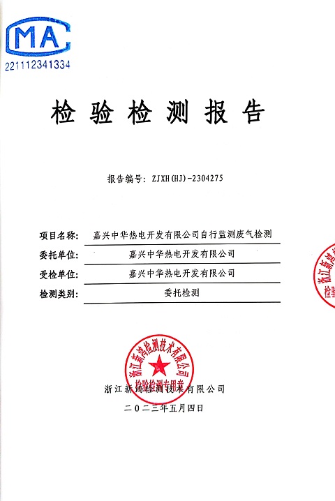 報告名稱(chēng):中華熱電2023.4廢氣檢測報告