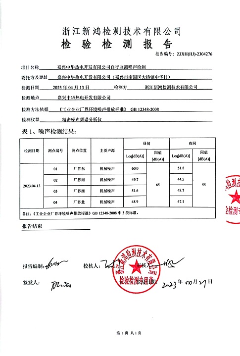 報告名稱(chēng):中華熱電2季度噪聲檢測報告