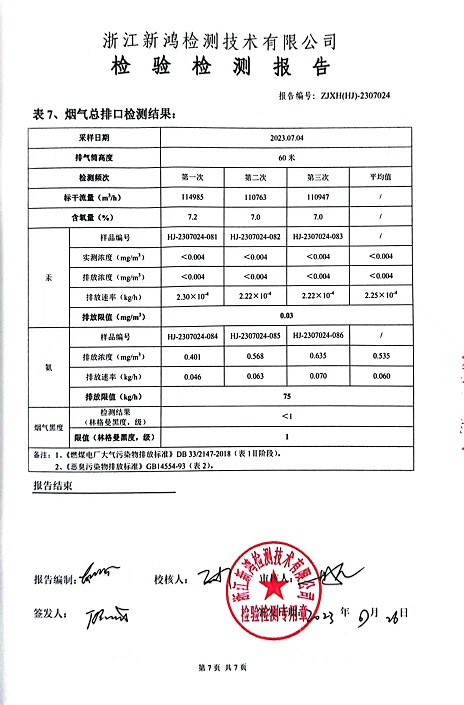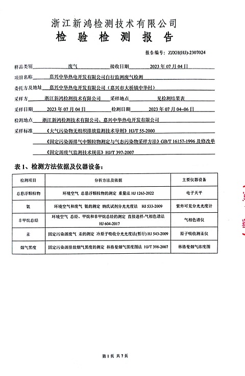 報告名稱(chēng):中華熱電2023.7月廢氣檢測報告