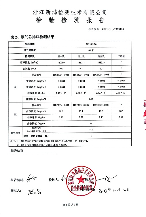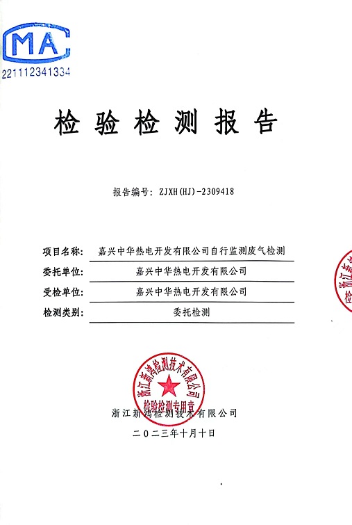 報告名稱(chēng):中華熱電2023.9月廢氣檢測報告
