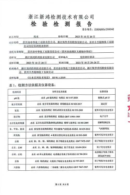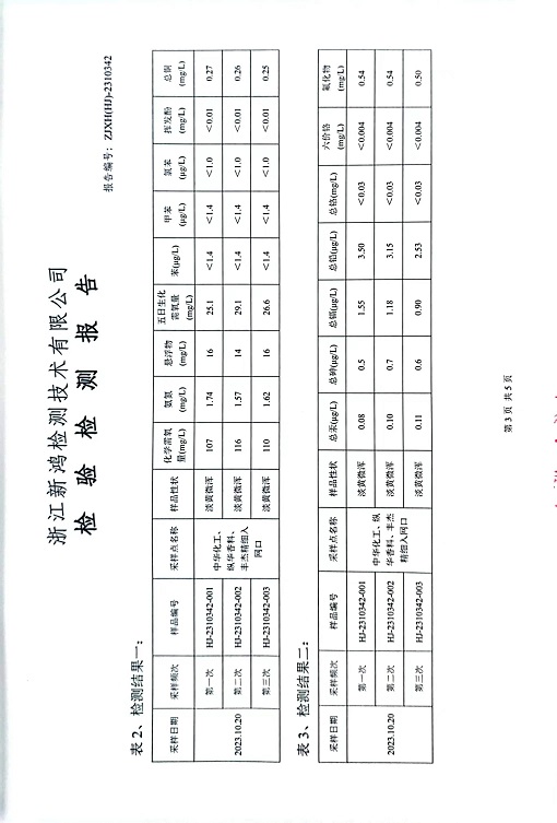 報告名稱(chēng):中華化工、縱華、豐杰2023.4季度廢水檢測報告
