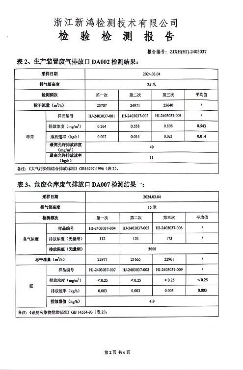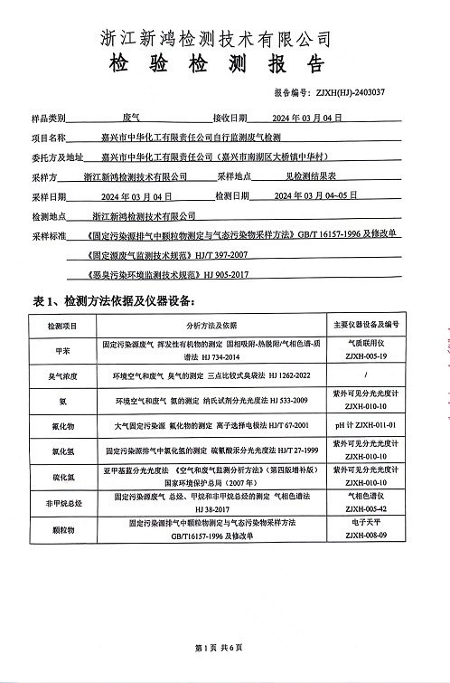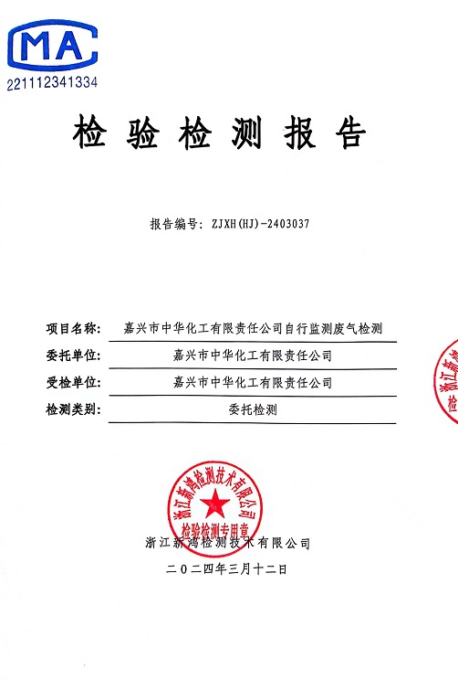 報告名稱(chēng):2024年中華化工1季度廢氣檢測報告