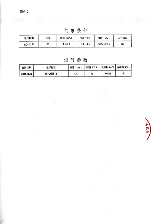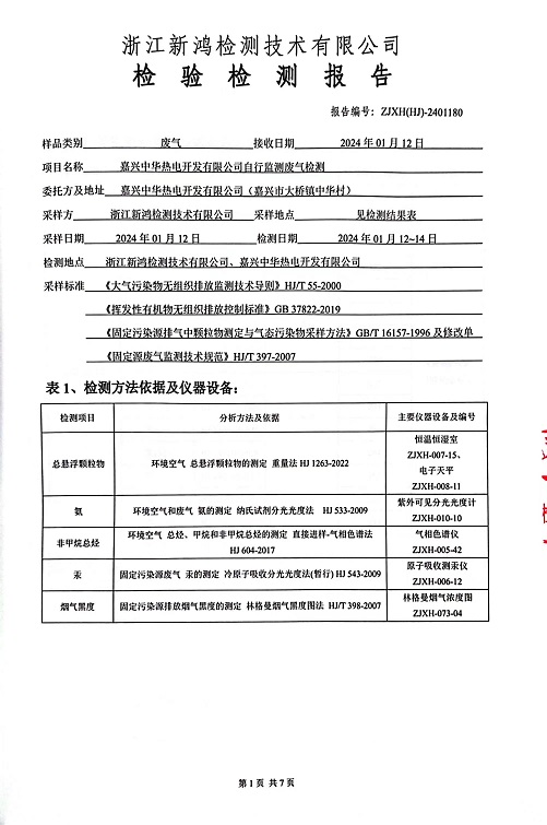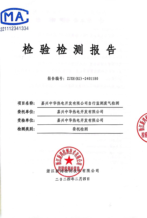 報告名稱(chēng):2024年中華熱電1月廢氣檢測報告