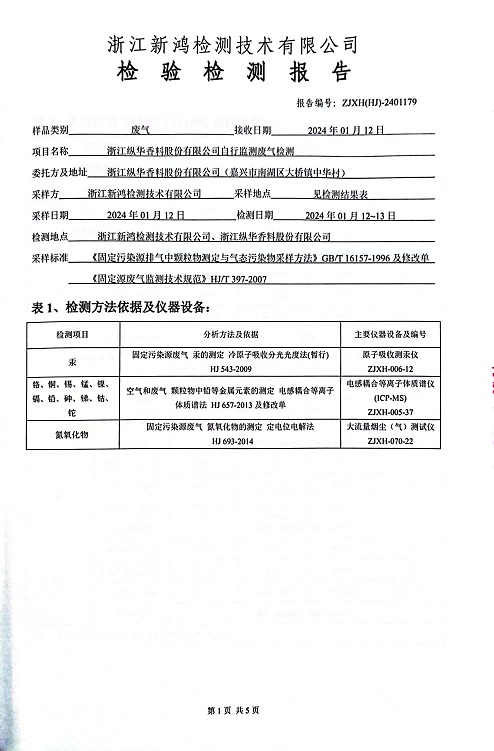 報告名稱(chēng):2024年縱華1月廢氣檢測報告