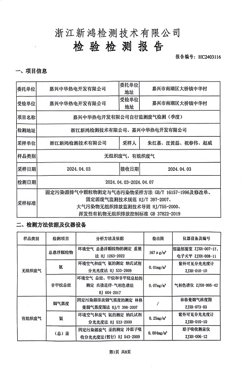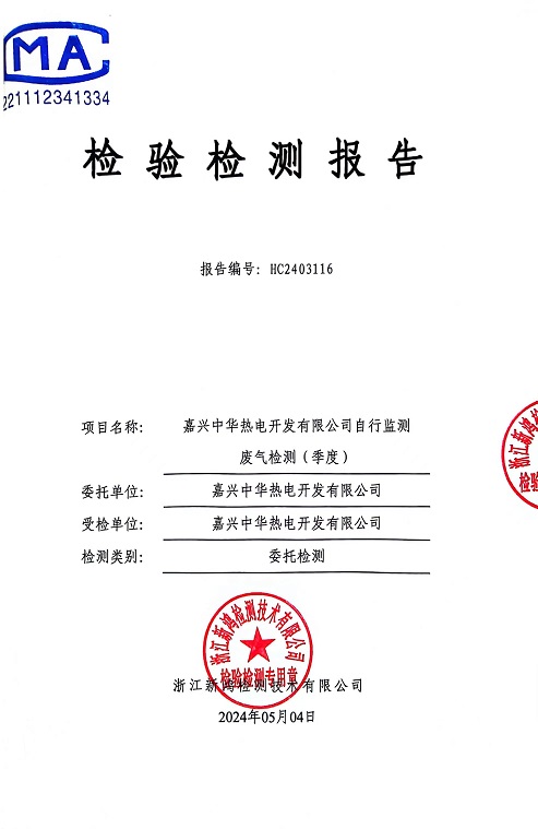 報告名稱(chēng):2024年中華熱電4月廢氣檢測報告