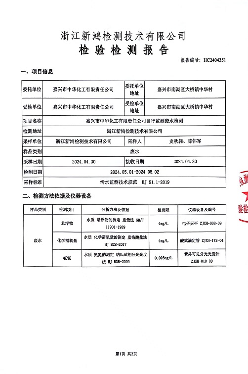 報告名稱(chēng):中華化工雨水4月檢測報告