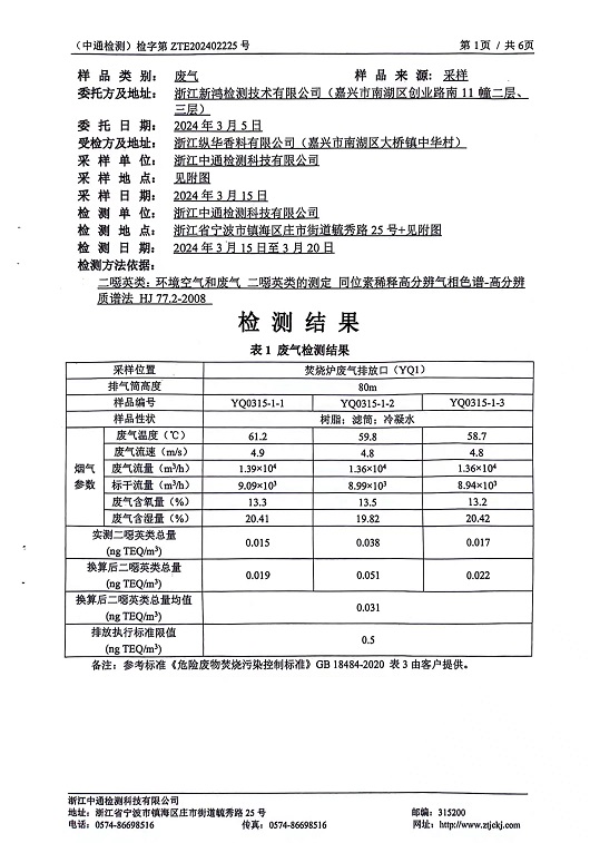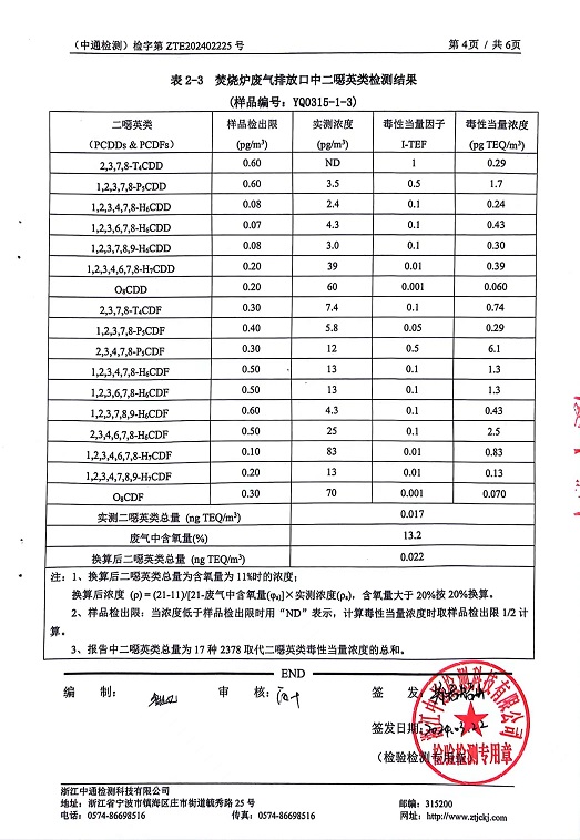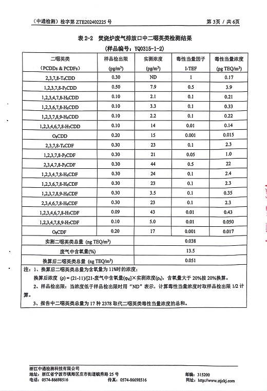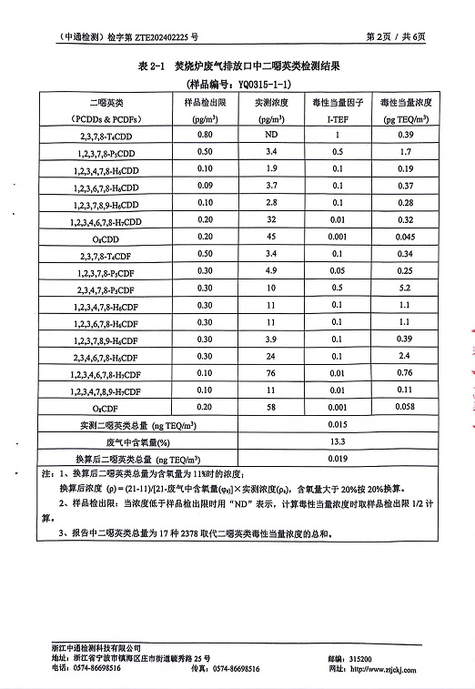 報告名稱(chēng):2024年縱華二噁英上半年檢測報告