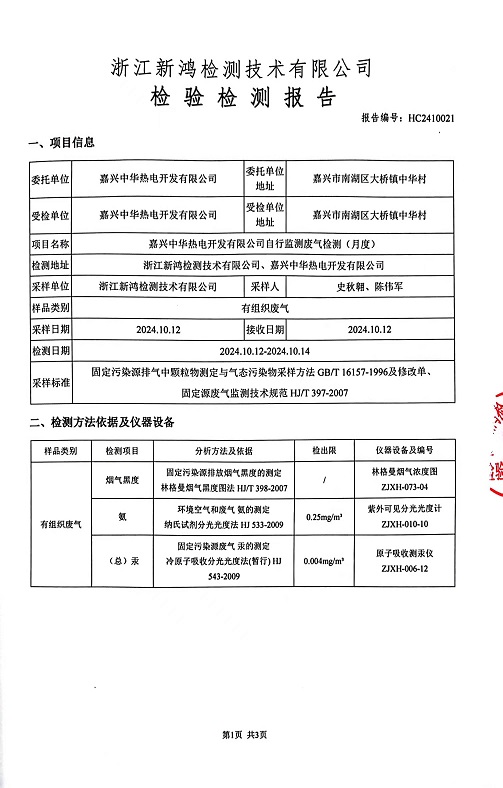 - 中華熱電3季度廠(chǎng)界檢測報告