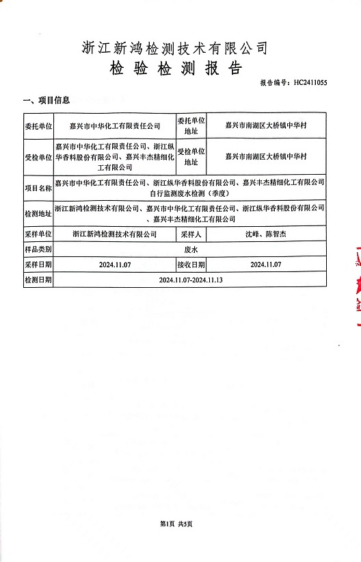報告名稱(chēng):中華化工4季度廢水檢測報告