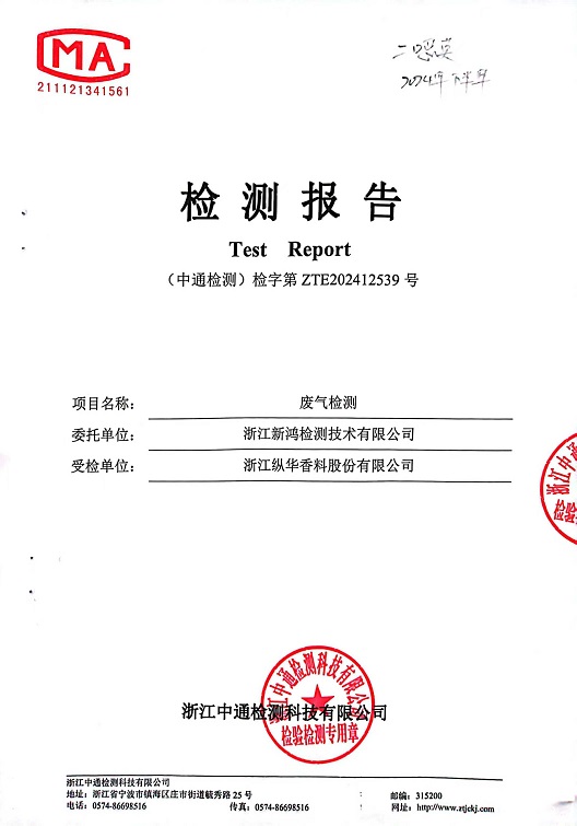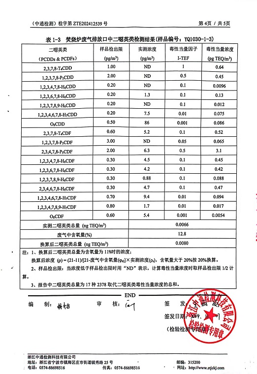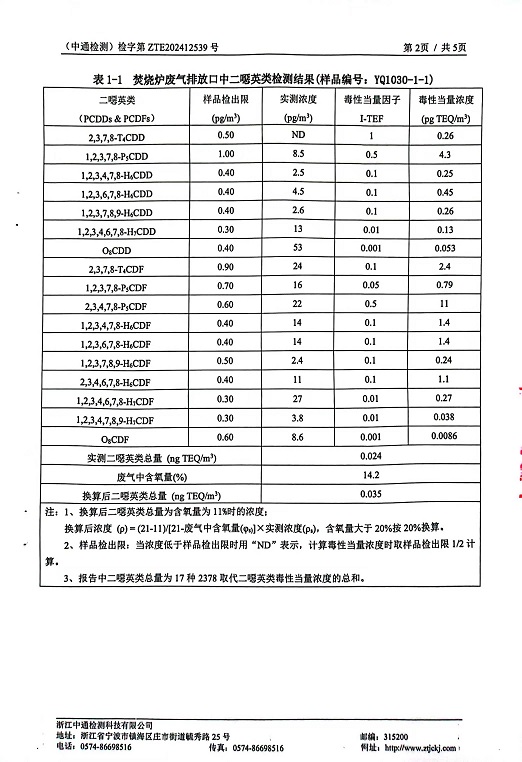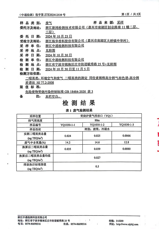 報告名稱(chēng):2024年縱華二噁英下半年檢測報告