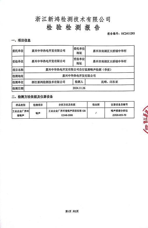 報告名稱(chēng):中華熱電4季度噪聲檢測報告