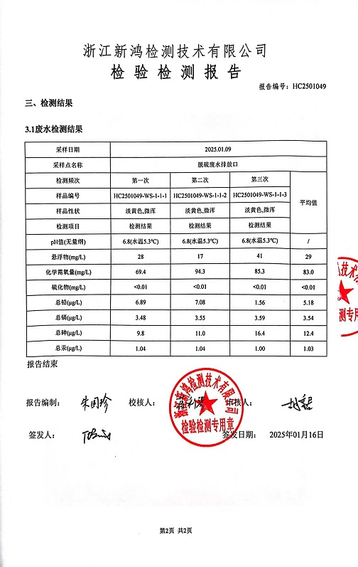 報告名稱(chēng):中華熱電2025年1月廢水檢測報告