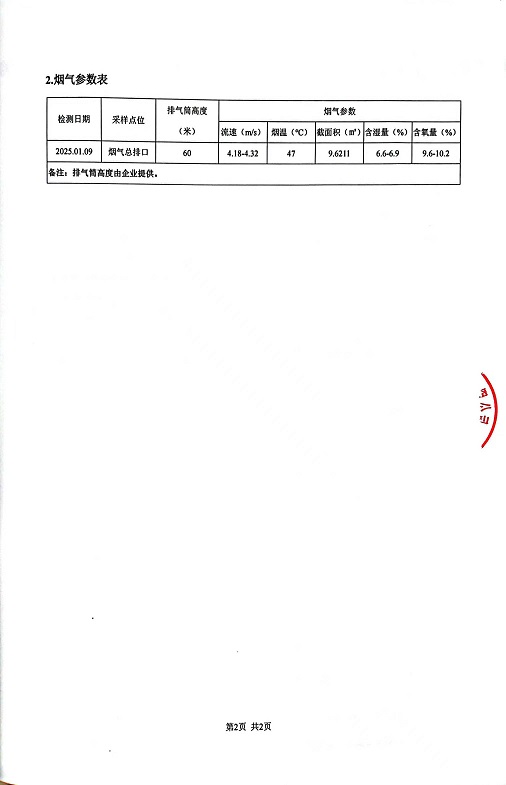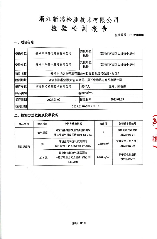 報告名稱(chēng):中華熱電2025年1月煙氣檢測報告