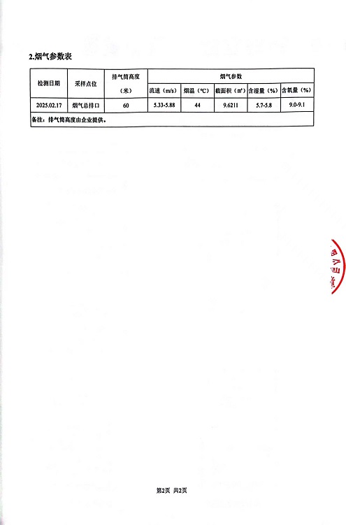 報告名稱(chēng):中華熱電2025年2月煙氣檢測報告