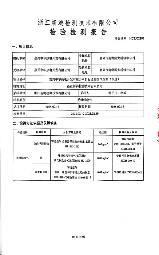 報告名稱(chēng):中華熱電2025年1季度廠(chǎng)界檢測報告