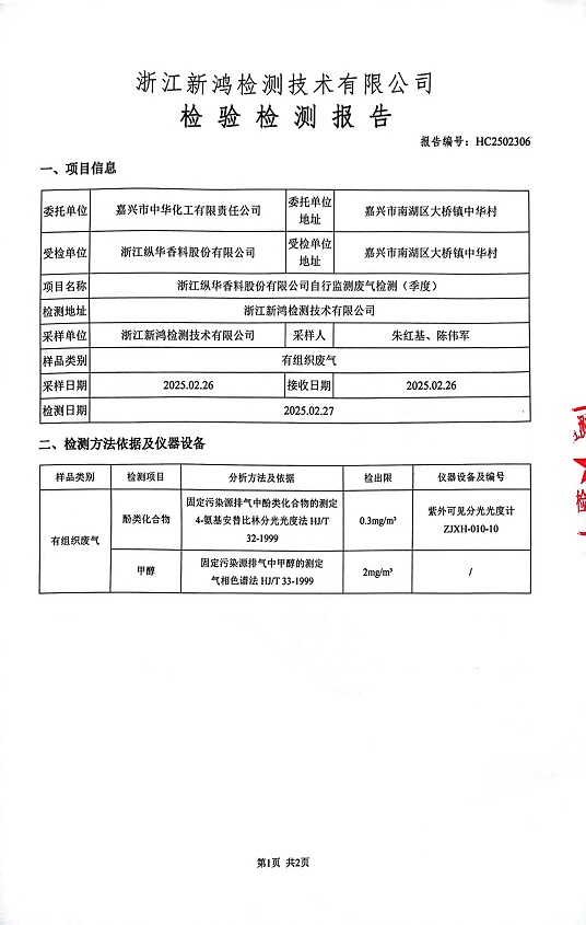 報告名稱(chēng):縱華1季度廢氣檢測報告