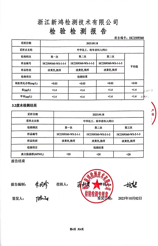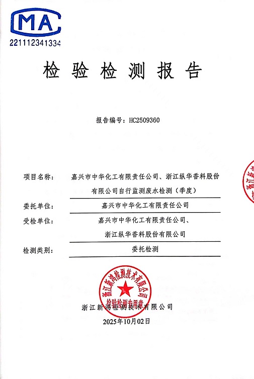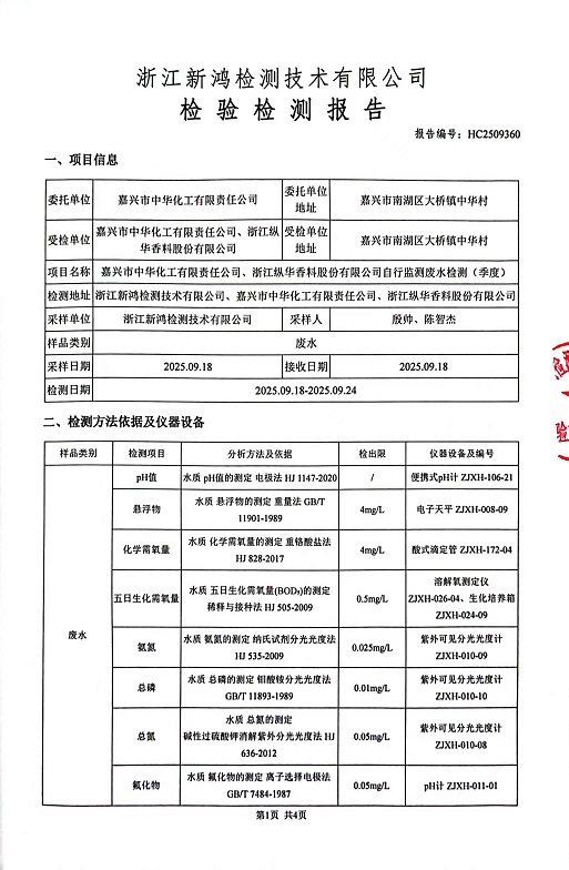 報告名稱(chēng):中華化工3季度廢水檢測報告