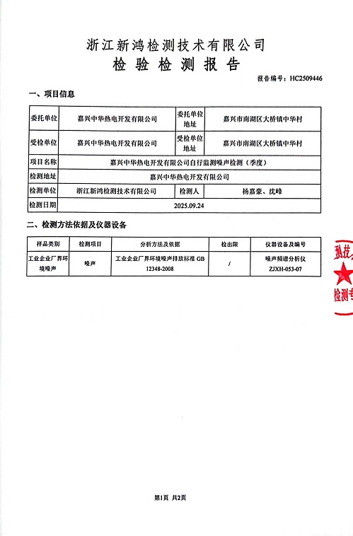 - 中華熱電2季度噪聲檢測報告