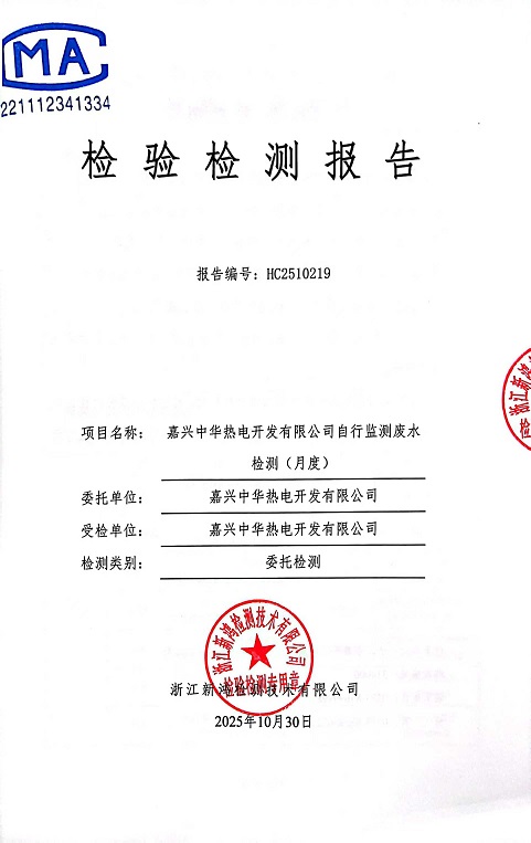 報告名稱(chēng):中華熱電10月廢水檢測報告