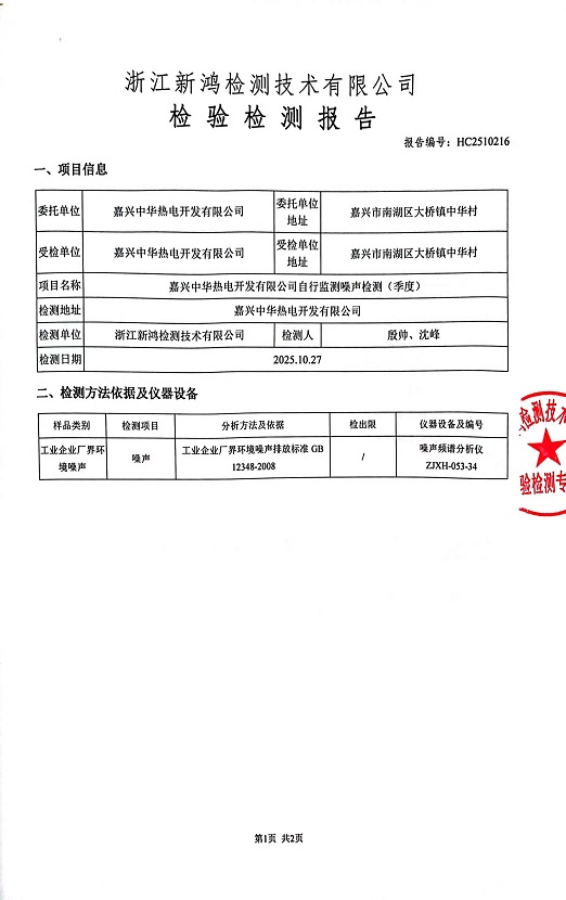 報告名稱(chēng):中華熱電噪聲4季度檢測報告