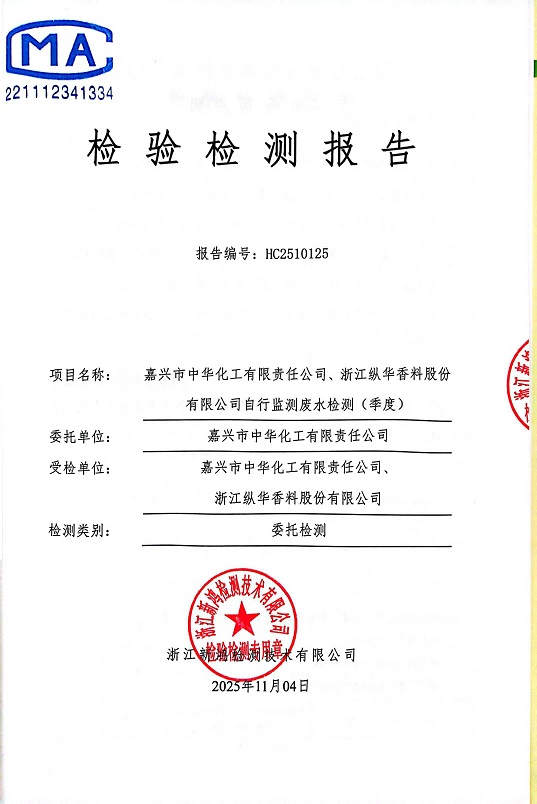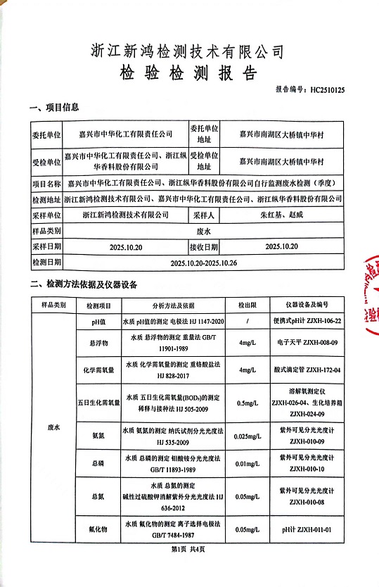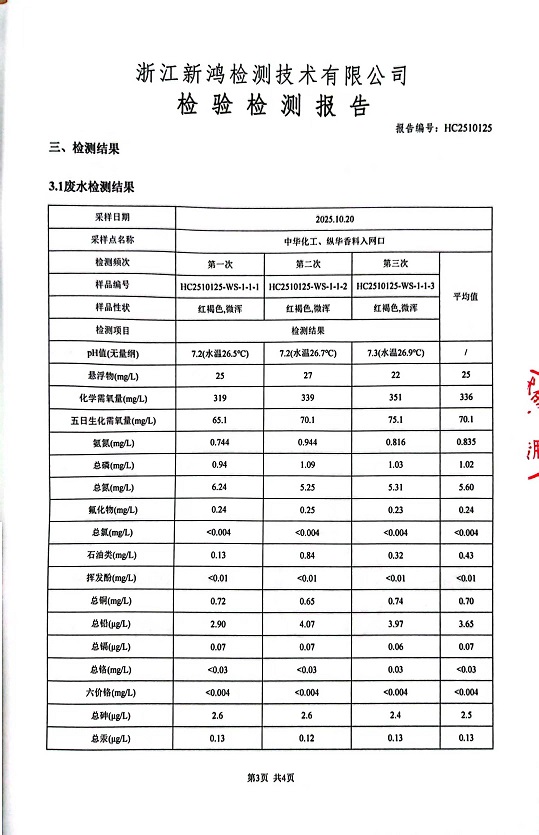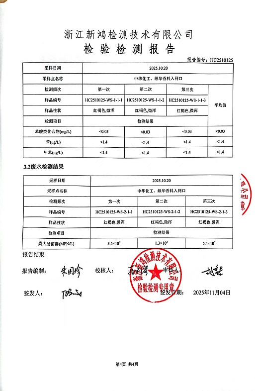 報告名稱(chēng):中華化工4季度廢水檢測報告